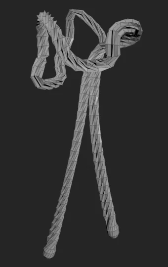 This week I’ve been given a certain subdivision model to fix, optimize, and also prepare a proxy for simulation. One of the model’s part was a tied lace hanging loosely from ringed holes, similar to what you have in shoes, just upside down. From the very first glance I realized that this guy will need more love that the other areas of the model.