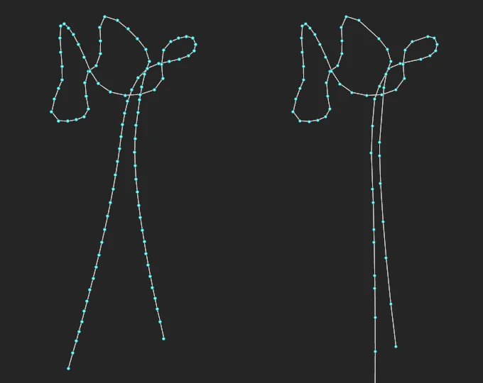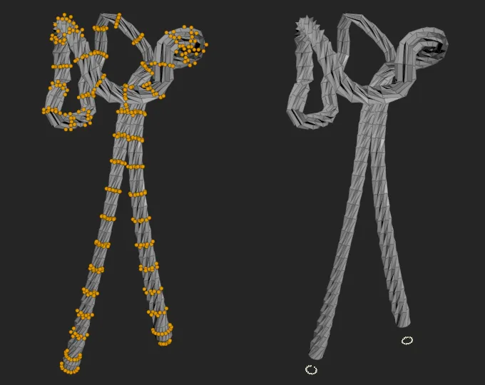 To create a simulation proxy I needed a curve, which I could later pass to Vellum. The curve could also be used to reconstruct the geometry from scratch, because firstly, I didn’t like the “twisted” nature of the topology, and secondly, I found the lace too thick. Unfortunately the model didn’t come with any geometry that was used to create it, so I had to find a way of reconstructing the curve, or draw it manually. The latter I immediately rejected. I didn’t want to sit for an hour eyeballing points of a Bézier or NURBS curve. That’s not why I use Houdini. Let the computer do what it was designed for — calculations.