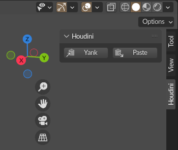 file, you’ll have “Blender Clipboard” shelf in Houdini and a “Houdini” panel in the viewport’s sidebar in Blender.