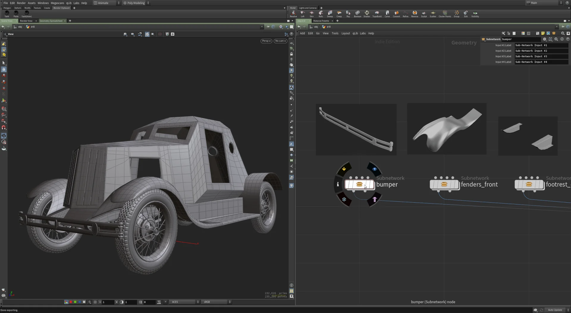 So let’s put all what have been said into some practical context. Here’s a WIP of a subdiv Soviet D-8 armored car asset that I’m currently working on. All base shapes were started in Houdini, most subdiv parts which were too time consuming to model in Houdini, I’m passing to NVil or Blender, depending on which program I feel will make it more convenient to achieve the goal.