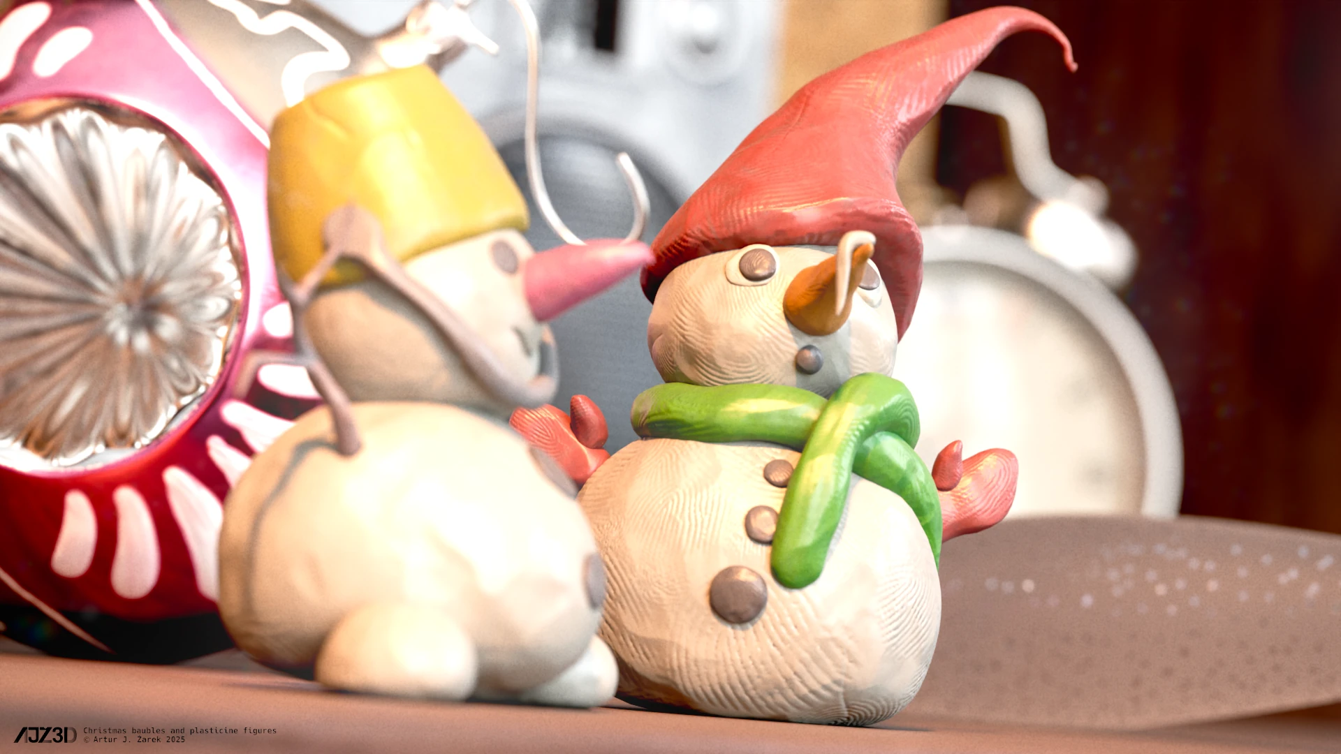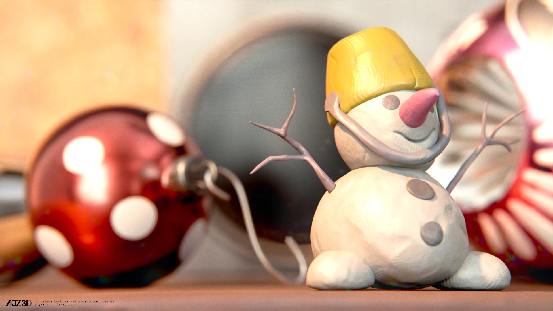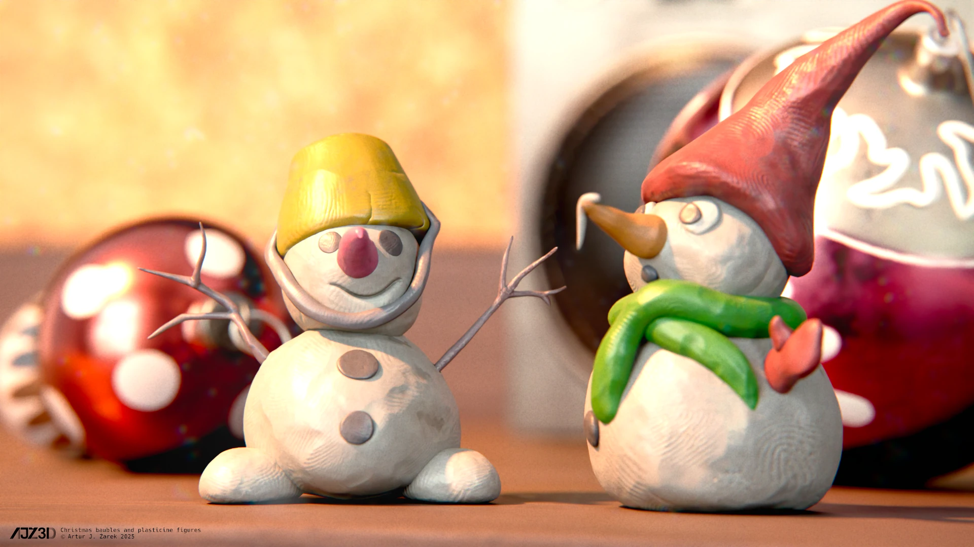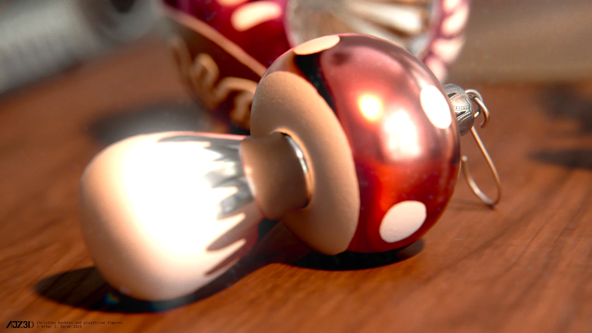 Some random Christmas assets gathered on a desk.