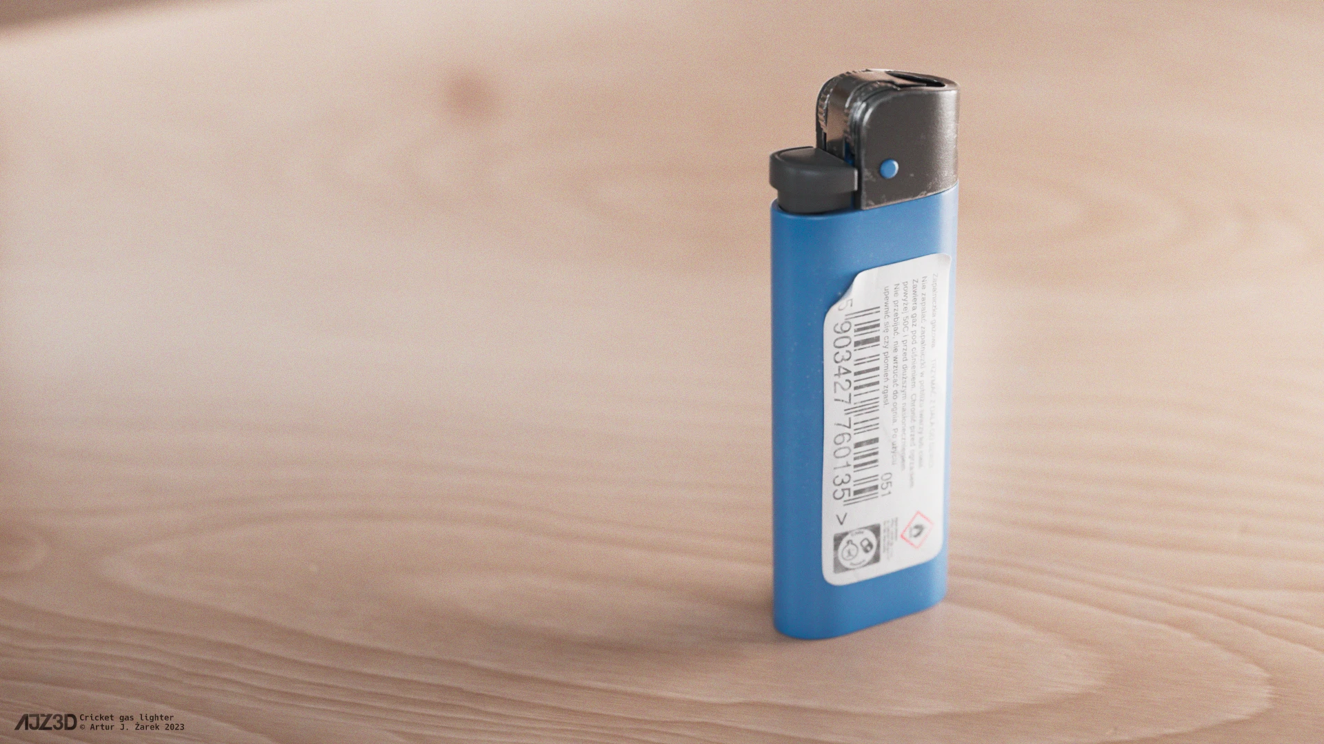 A very popular international brand of lighters. Their lighters come in various sizes, shapes and igniter types. With or without adjustable flame lever. The model is a rework of one of my oldest assets and is based on a physical reference.