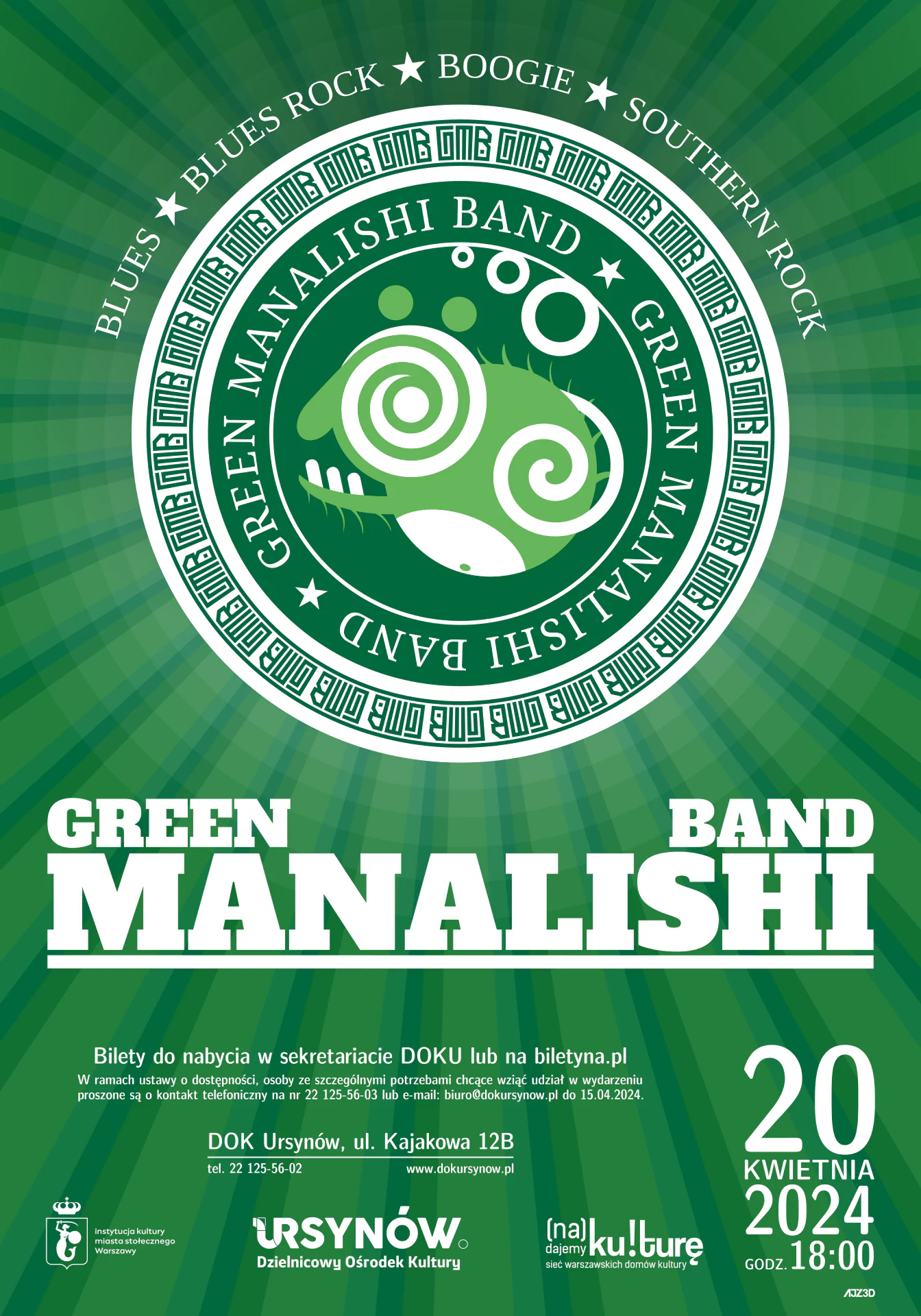 A vector poster that I created for the Green Manalishi Band’s gig in Dzielnicowy Ośrodek Kultury Ursynów. Variations of the design were used by the band for the next year.