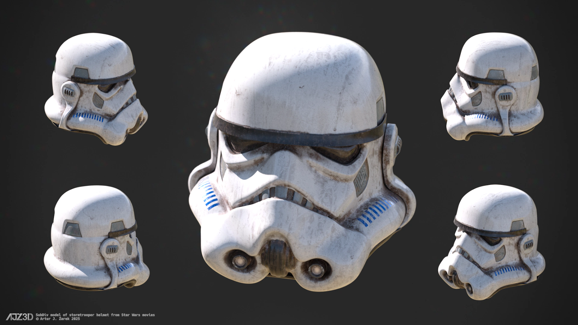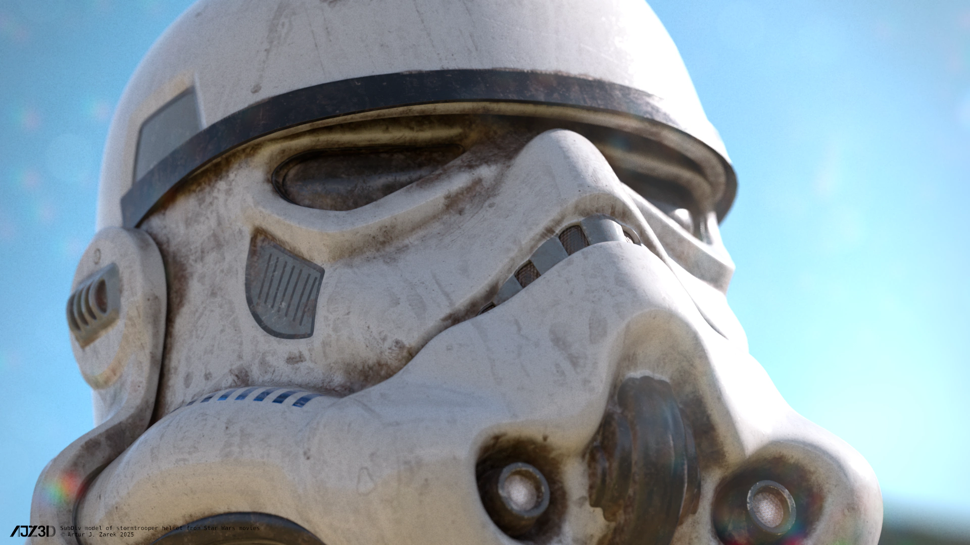 As I was looking for a challenge, I decided that the stormtrooper helmet, with its mixture of hard surface and organic shapes, and widely known appearance, would be a perfect choice for this endeavor.