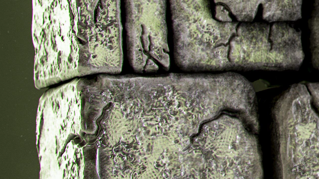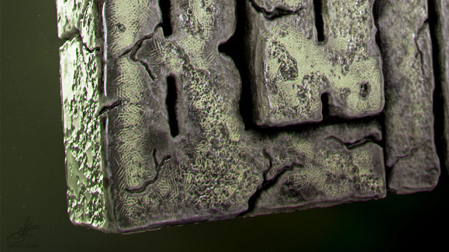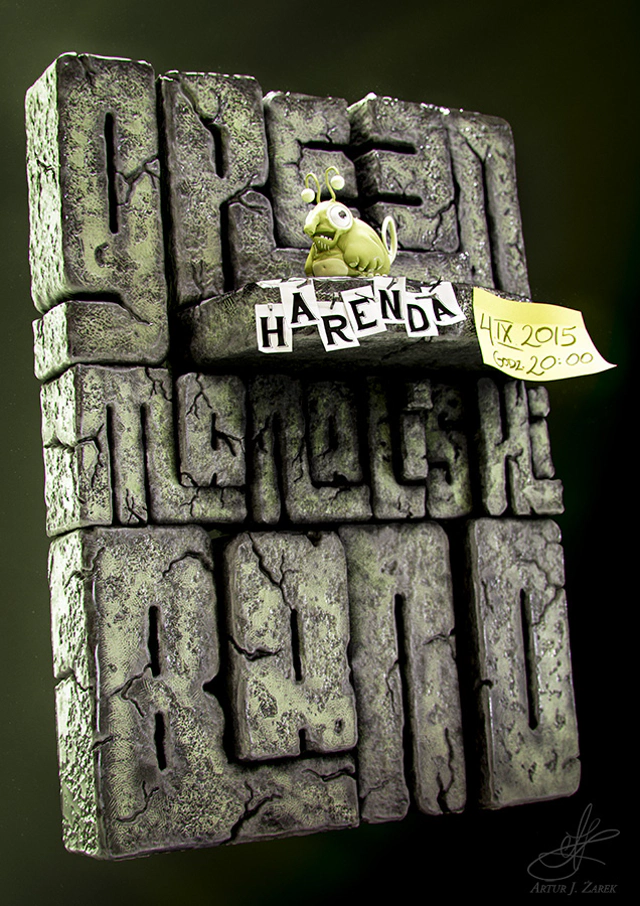 An A3 poster designed for Green Manalishi Band’s gig in Harenda club (Warsaw, Poland). Due to tight time constraints 3D-Coat’s new Autopo routines were used, instead of manual retopologization of the stone letters and the band’s mascot. The algorithm performed surprisingly well as the result required only few manual topology tweaks. All major objects use displacement mapping.